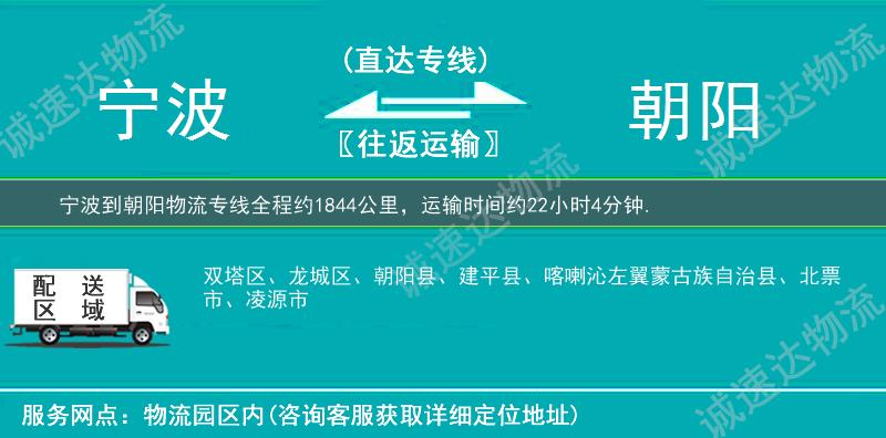 歡迎來電咨詢寧波海曙區(qū)到朝陽物流專線相關信息,天天發(fā)貨,全程3-7天可將您的貨物送至朝陽全市:龍城區(qū)、喀喇沁左翼蒙古族自治縣、北票市、凌源市、朝陽縣、雙塔區(qū)、建平縣、。